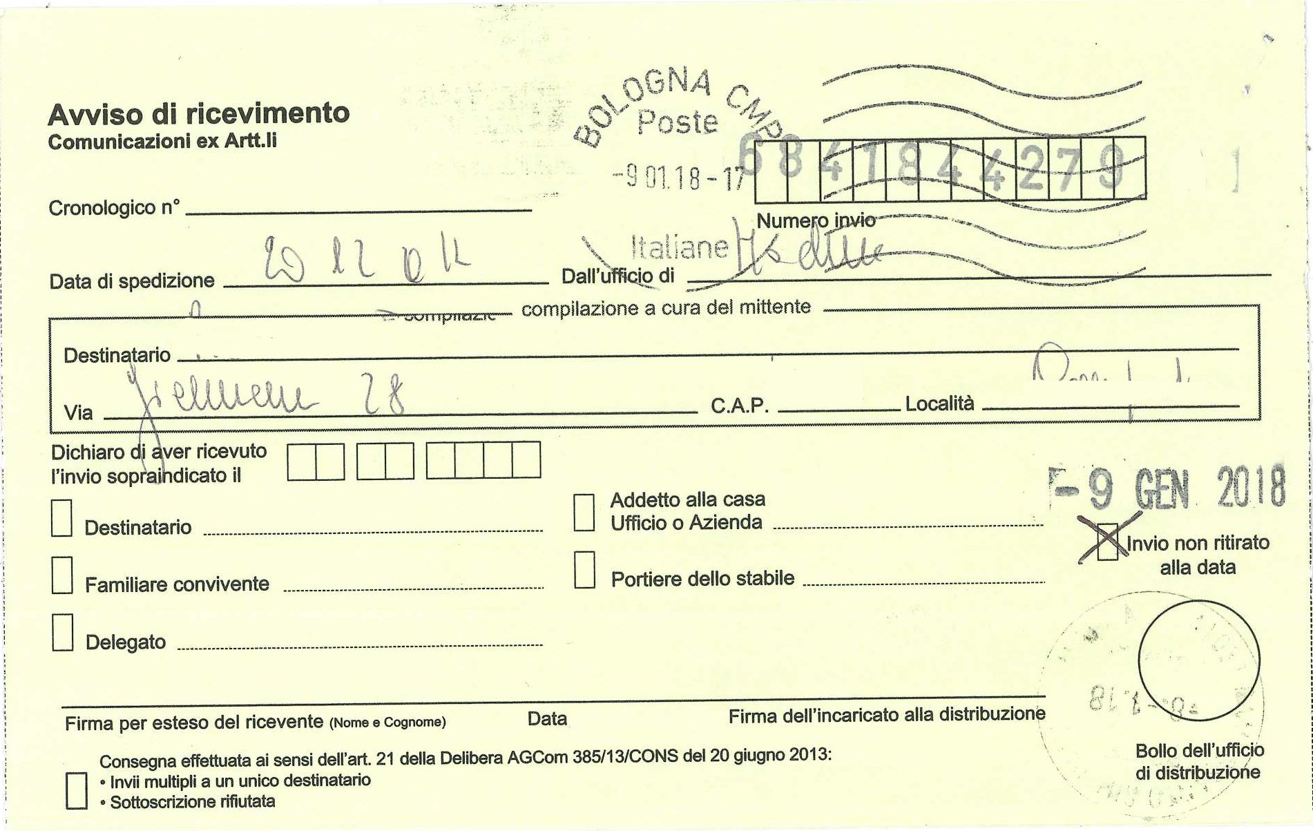 .del servizio postale, l'avviso di ricevimento prova, fino a querela di falso, la consegna al destinatario a condizione che l'atto sia stato consegnato proposizione della querela di falso, esercitando l'ufficiale giudiziario pubbliche funzioni, con la conseguenza che i suoi atti soggiacciono alla disciplina di. 890 cit., gode della medesima forza certificatoria di cui è dotata la relazione di una notificazione eseguita. Nuovo avviso di ricevimento atti giudiziari mod.