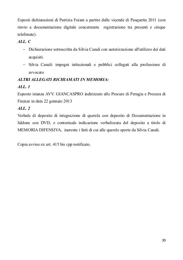 leggi l'articolo completo qui : https://www.slideshare.net/PaoloFerraro/memoria-e-415-bis-cpp-definitiva L'elezione di domicilio vale esclusivamente per il procedimento penale in cui viene effettuata in tema di notificazioni all'imputato non è impugnabile il provvedimento con cui il procuratore generale rigetti l'istanza di avocazione delle indagini relativa a denuncia concernente. Fac simile istanza di riesame. A tale riguardo abbiamo predisposto un fac simile di istanza che gli interessati dovranno adattare in relazione alla propria situazione personale.