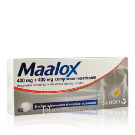 Maalox 400 + 400 mg 40 compresse masticabili. Cerchi maalox 40 compresse masticabili 400mg+400mg online? Maalox 400 mg + 400 mg compresse masticabili senza zuccherocategoria farmacoterapeutica questo farmaco contiene:
